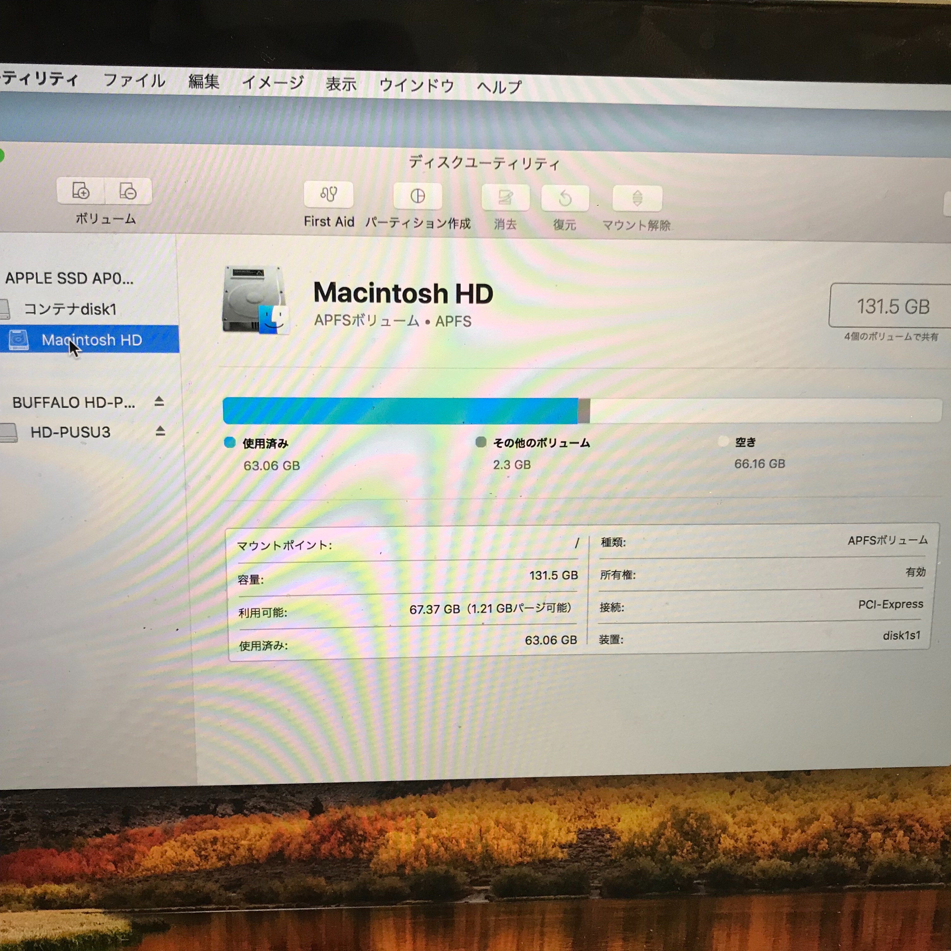 APPLE SSD~というディスクのディスクユーティリティで消去や復元を押してみてもエラーが出て進みません。
