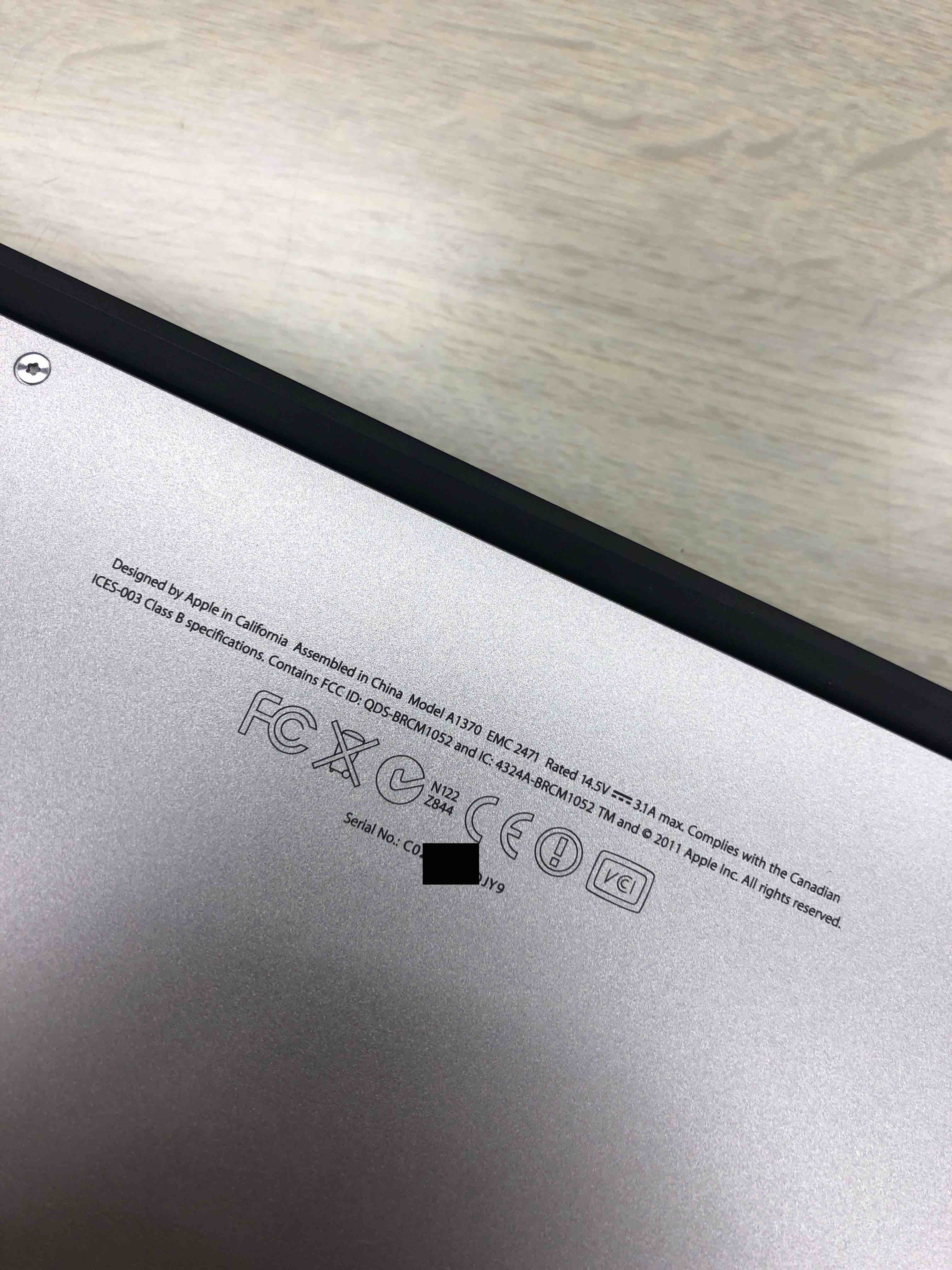 macは型番で言われるより、メニューバーのアップルアイコンをクリックするとこのマックについてというのがありますので、これをクリックして表示されるの情報(例えば、macbook air 11' mid 2011とか)を書いてもらえる方がはっきり伝わります。型番だと、違うモデルで同じ型番ということがあります。