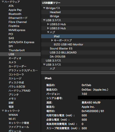 iPad Pro→USB-Cハブ→USBデバイス(USB-A)