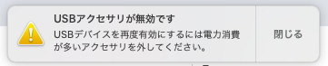 何も挿していないのに、「USBアクセサリが無効です」と出る