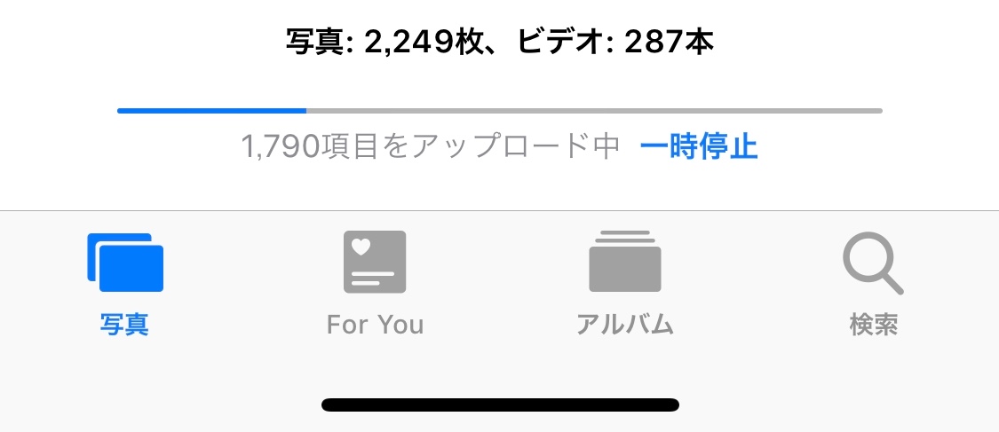 何度もすみません。写真のところを見てみるとこのように書かれていました。1790項目をアップロード中とあるので、消えていたと思われた写真はこれからアップロードされるのでしょうか?