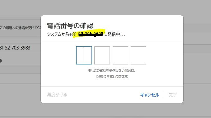 確認のための暗証番号が掛かってくる電話がかかってきません