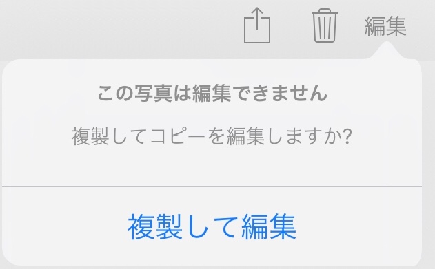 iPad ProやiPhoneで、マイフォトストリーム内の写真を編集したいが、任意の写真を選択し編集をタップしても、この写真は編集できませんと表示される。