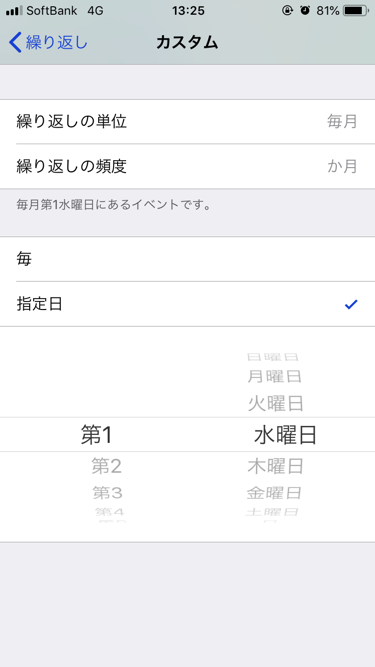リマインダで「第1水曜」と「第3水曜」というような繰り返しの設定について