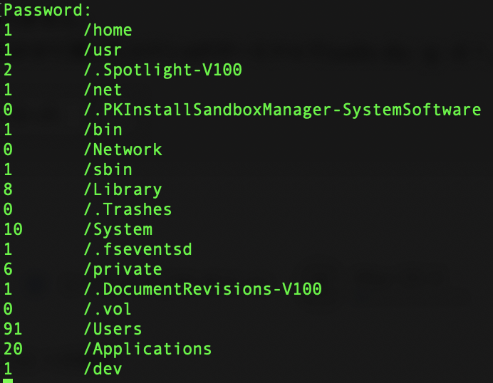 私の所ではsudo du -g -d 1 / 2>/dev/nullを実行すると途中までですが