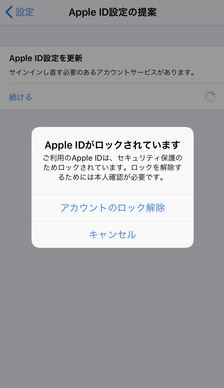 AppleIDがロックされています。と出ます。