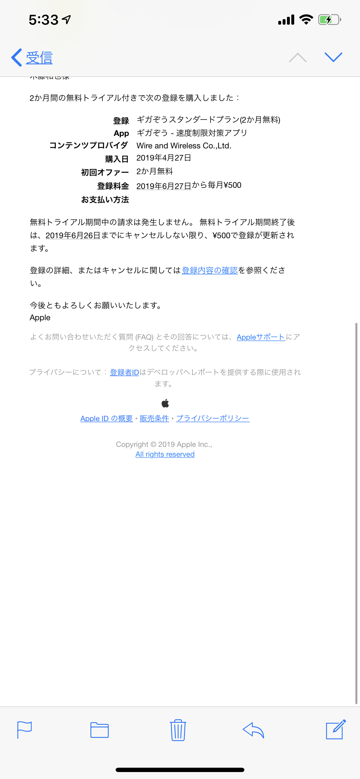 無料トライアルの登録をすると以下のメールが来ます。