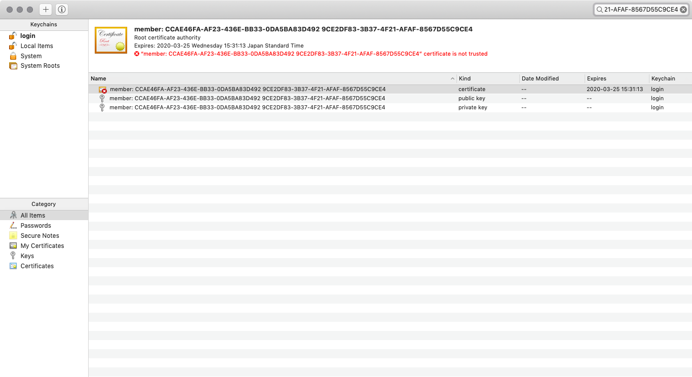 キーチェーンアクセスに”信頼されていない”証明書”によるログイン記録があります。削除しても、一部変更されたIDで繰り返し不審な証明書でログインしているようです。これは不正ログインなのでしょうか?原因や対策方法を教えていただきたいです。