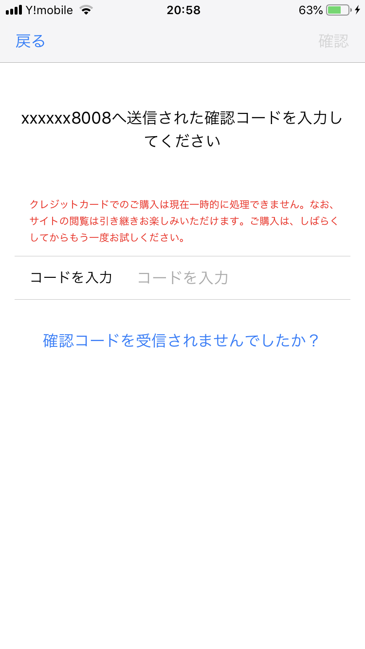 smsで確認コードが送られてこない