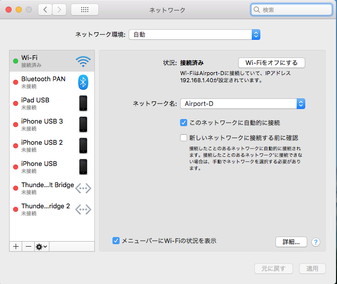 システム環境設定>ネットワーク>ネットワーク名>このネットワークに自動的に接続をチェックしています。