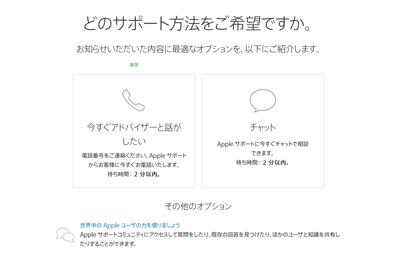 サポートに問い合わせる>登録してあるMacを選択>その他Macに関するトピック>該当するトピックがない