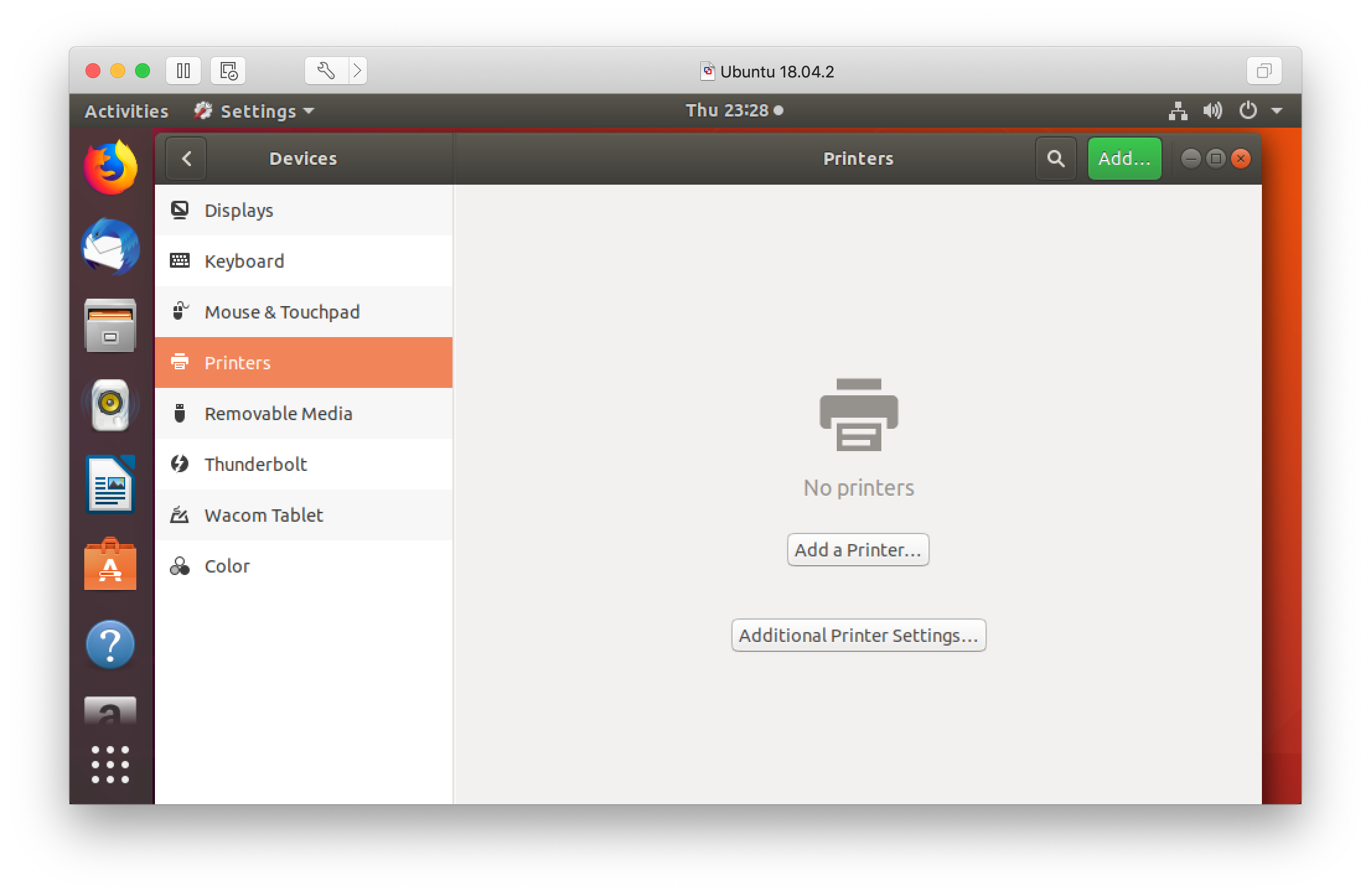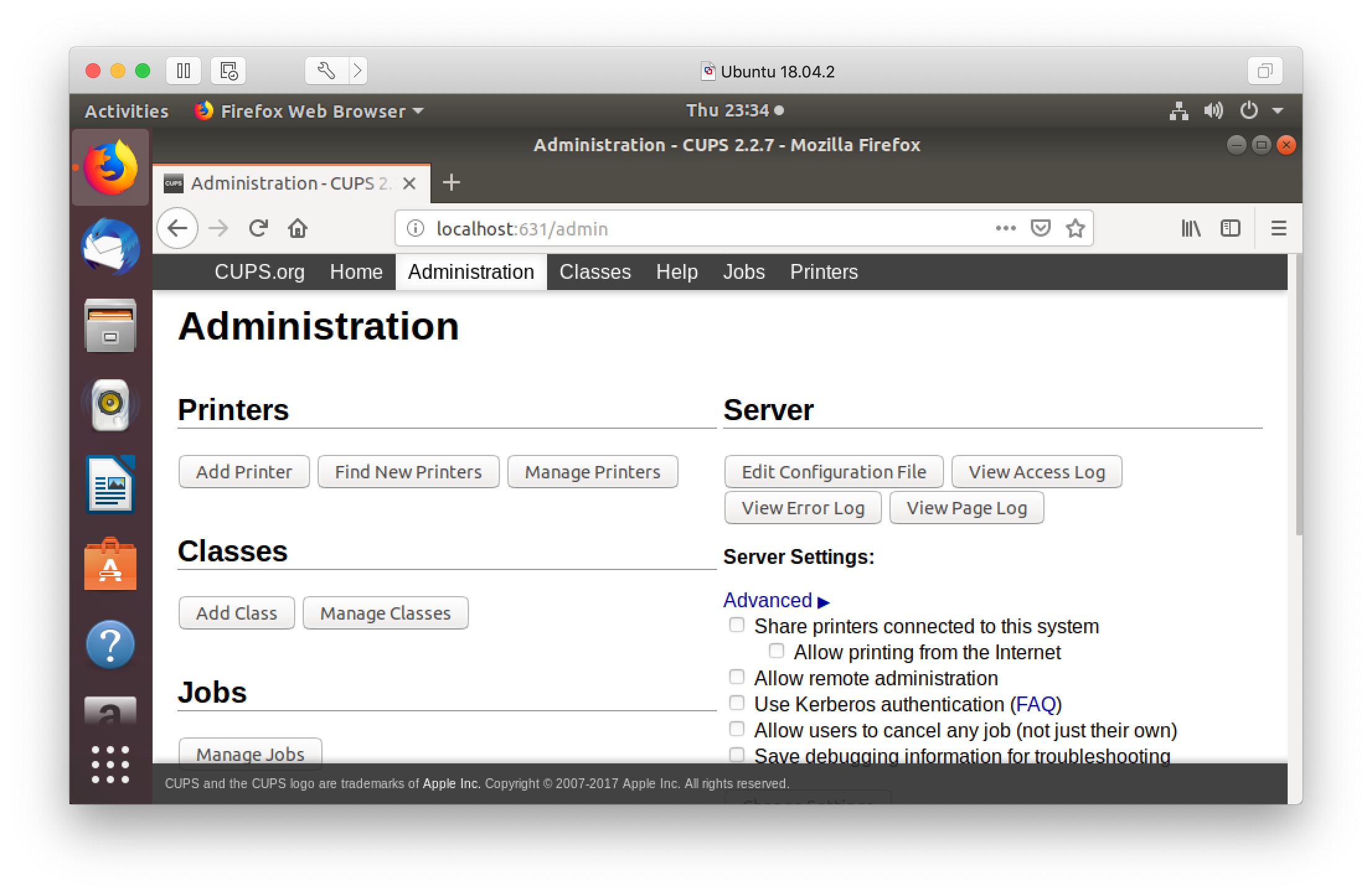 MacBookPro に VMFusion 11 にLinux(Ubuntu) をインストールしましたが、印刷が出来ません