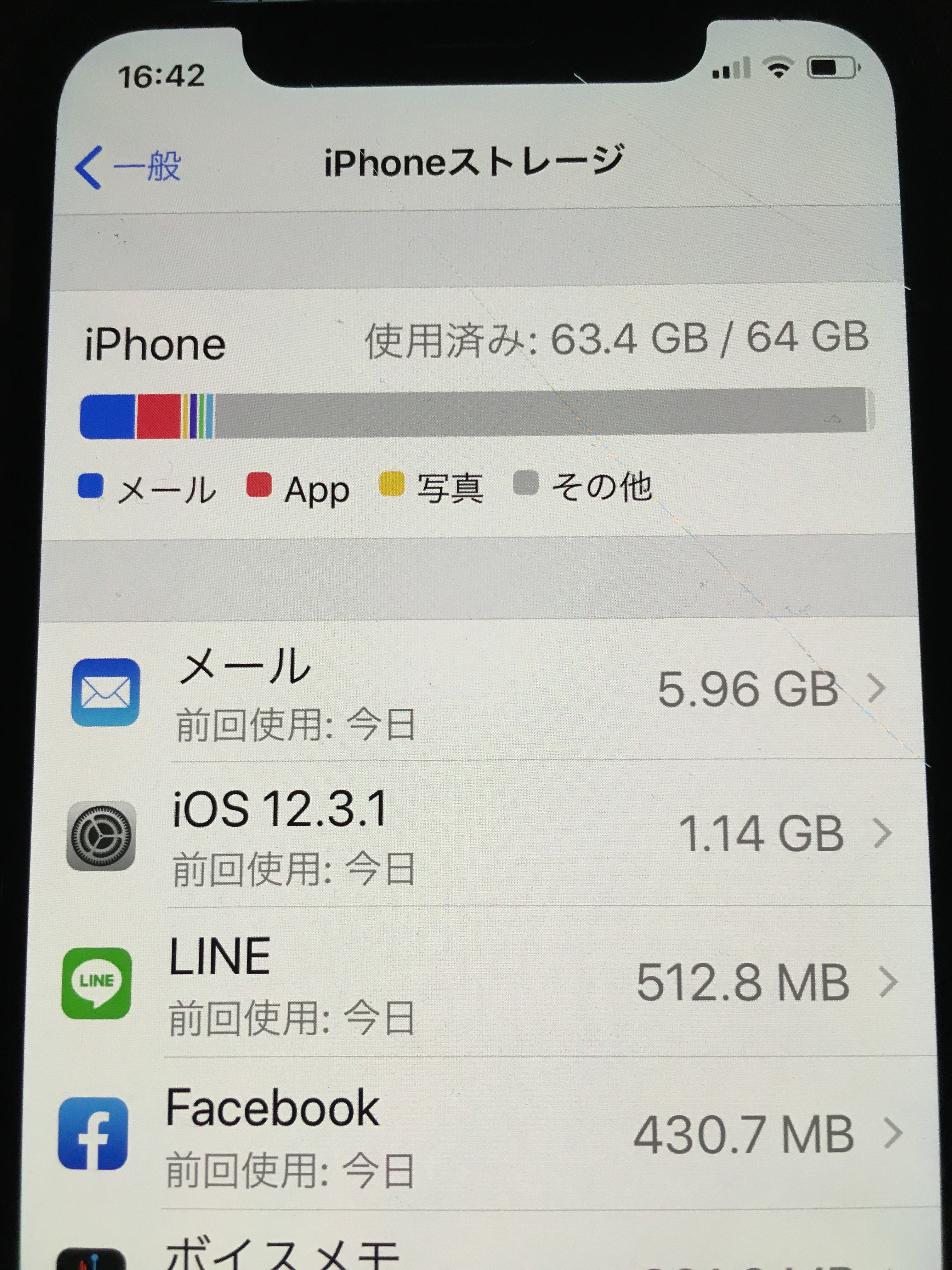 iPhone内ストレージがいっぱいになっているという表示になり、いろいろと削除していきましたが