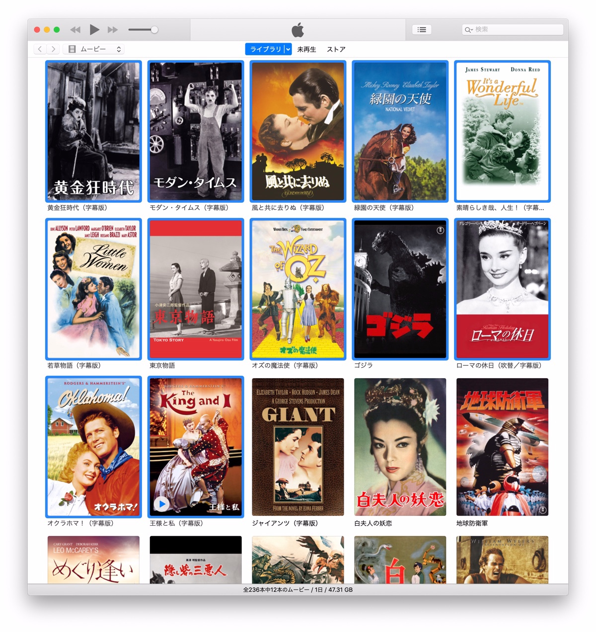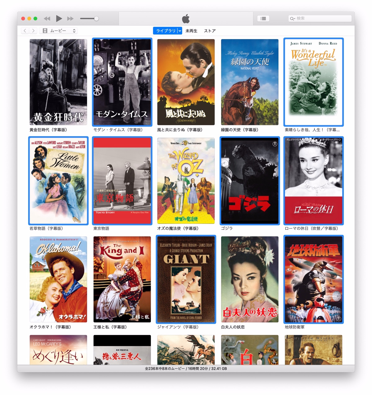 iTunes:< shift >キーを使用した場合は最初のグリッドからクリックしたグリッドまでの連続した選択となります。