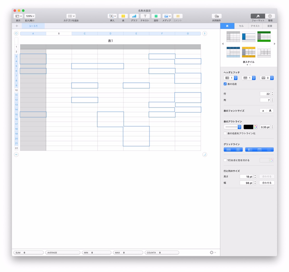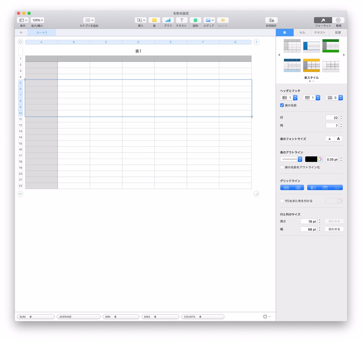 Numbers:< shift >キーを使用した場合は連続したセルの選択となります。