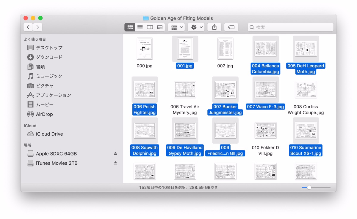MacBook Pro 15 Retina Mid 2012 / macOS Mojave 10.14.5 環境ですが、< shift >キーと< command >キーによる選択の挙動を記しておきます。機種は違っても OS が同じであれば、同じ挙動になるかと思います。