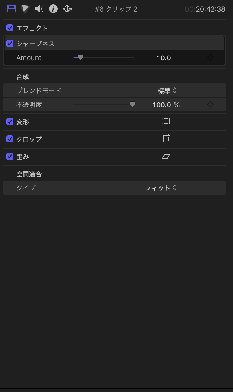 fcpx ver.10.4.6を使用しているのですが、インスペクタのビデオを選択しても手ぶれ補正およびローリングシャッターセクションがありません。