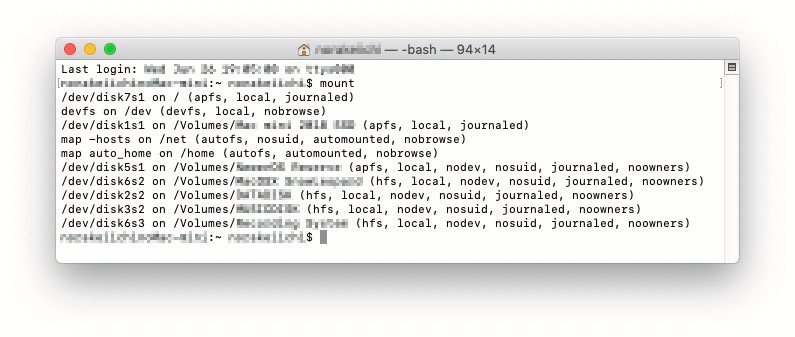 ・「起動ディスク以外」のFinderウインドウはすべて「/Volumes」となっている。
