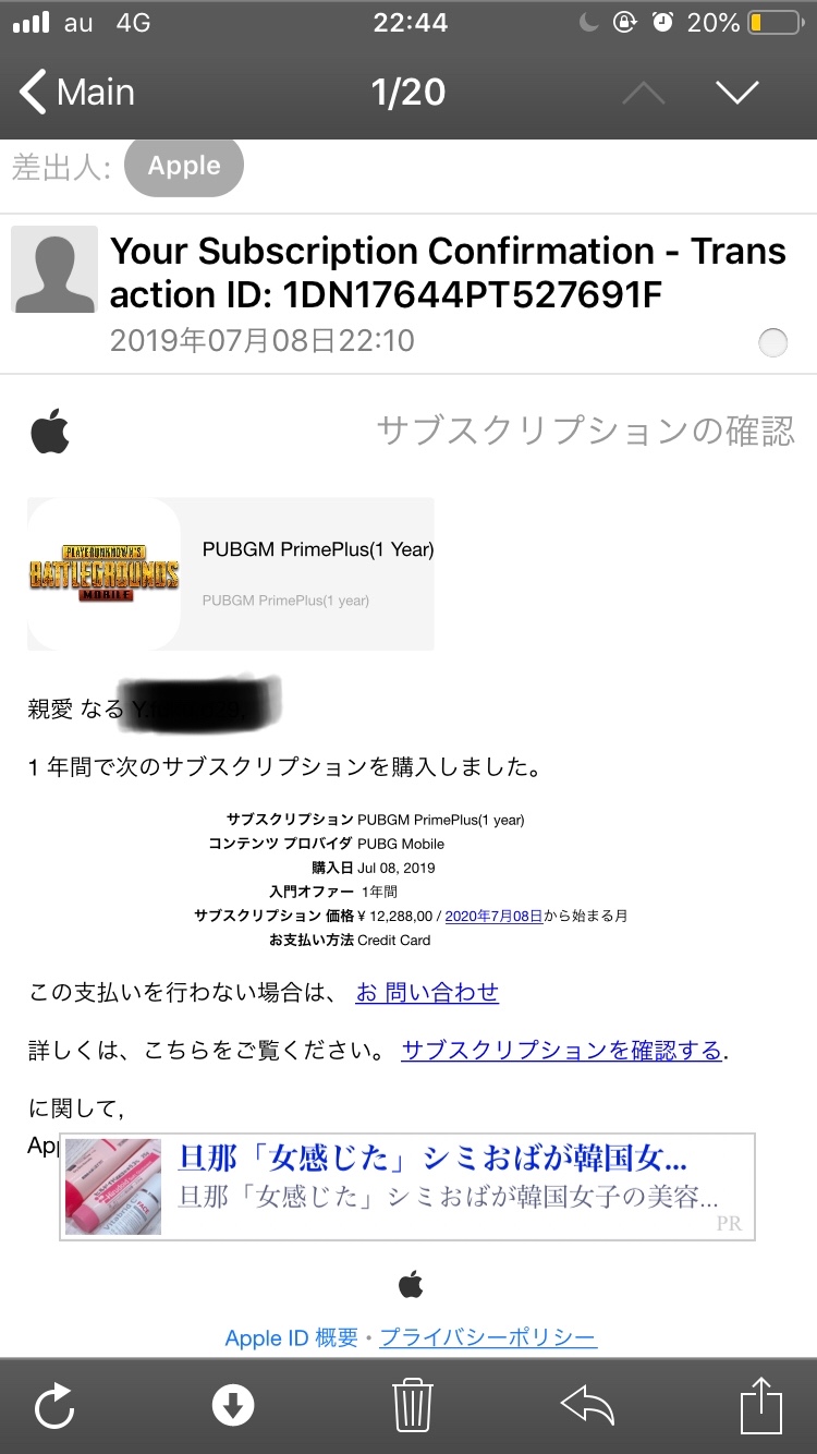 それと、Apple からの定期購読等に関する確認メールに、Apple とは全く関係の無い PR 広告のリンクを添付する事は有りえませんので、おかしな PR 広告のリンクが添付されている時点で、フィッシングメール(詐欺メール)と判断して構いません。