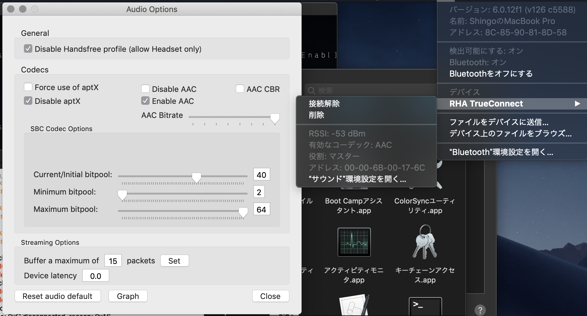 Bluetooth explorerを使用し、AACコーデックに対応させることには成功したのですが、