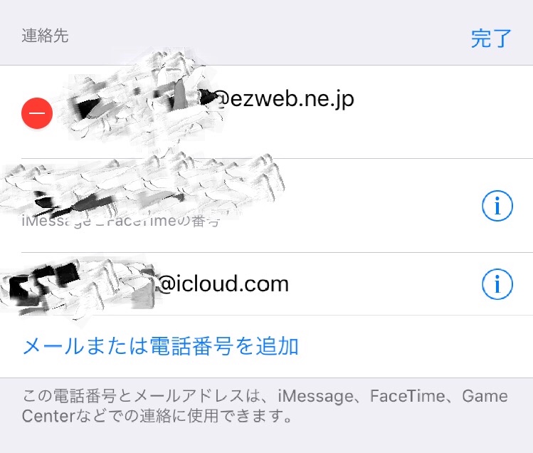 設定の連絡先は画像のようになっていて、下のiCloudアドレスが新しく作ったものです。