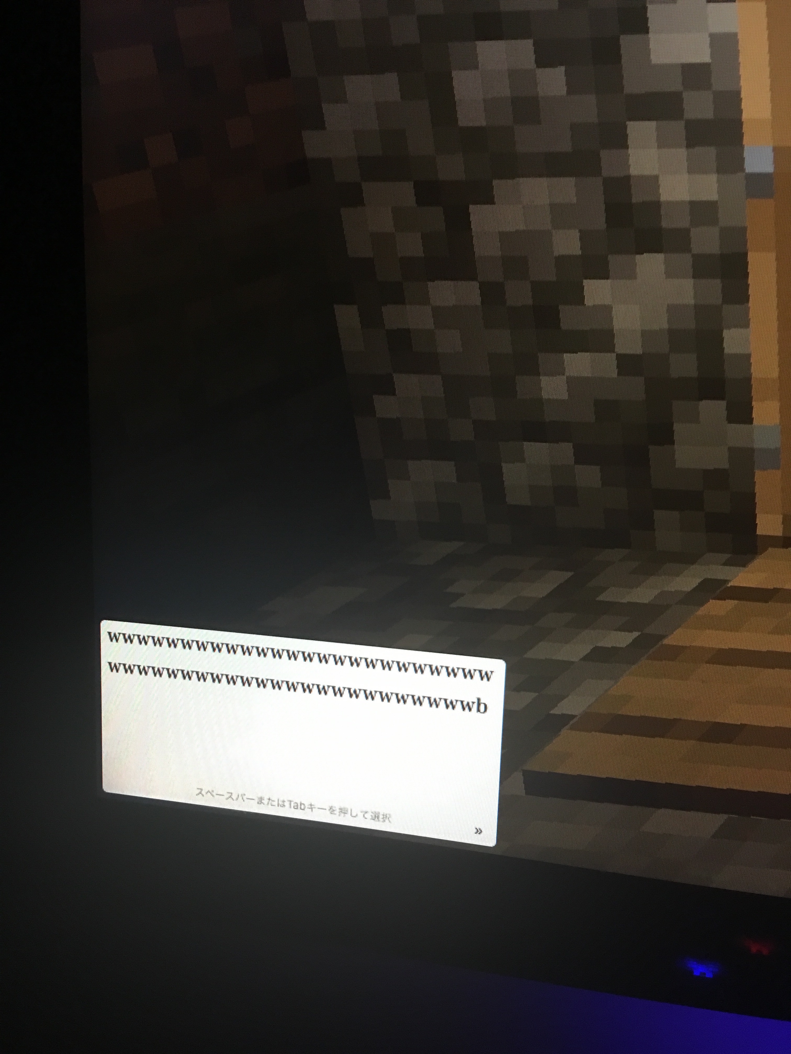 自分はMacでMinecraftをしようと購入し、遊んでいるのですが、左下に出てくる文字入力のバーみたいなものが出てきて非常に困っています。対処法など調べ、色々試してみたのですが、効果は見られず。サイトなどではFinderを強制終了するなどと書いてあり試しましたが効果はなく画像のように出てきます。非常に困っていますので誰か対処法を知っている方教えて頂きたいです。
