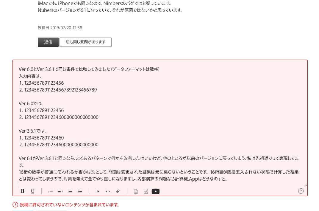 iMacでも、iPhoneでも同じなので、Nimbersのバグではと疑っています。