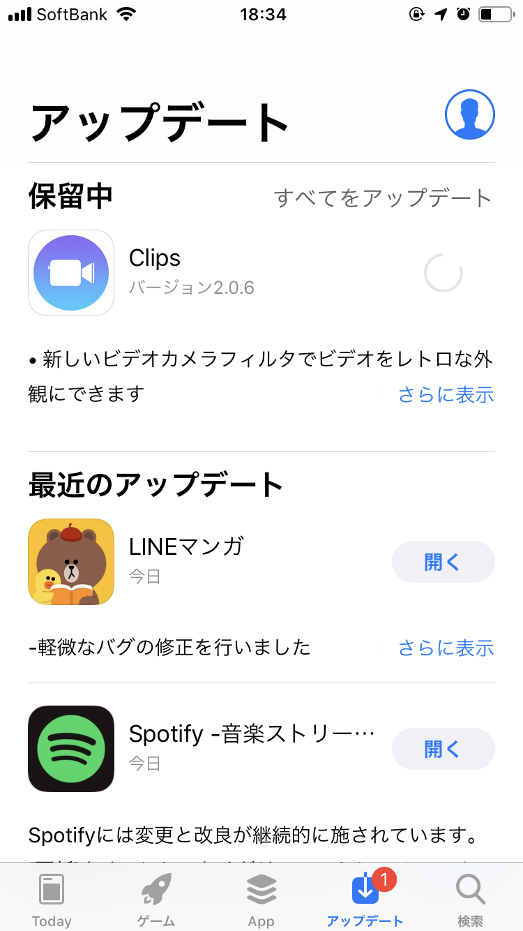 Apple Storeから、2ヶ月くらい前にアップデートしたが、ずっとクルクルがまわるだけで、アップデートされない。