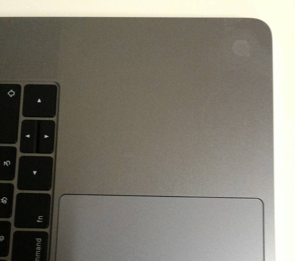今朝、パームレスト右下隅の部分に水滴の跡のシミを見つけました。