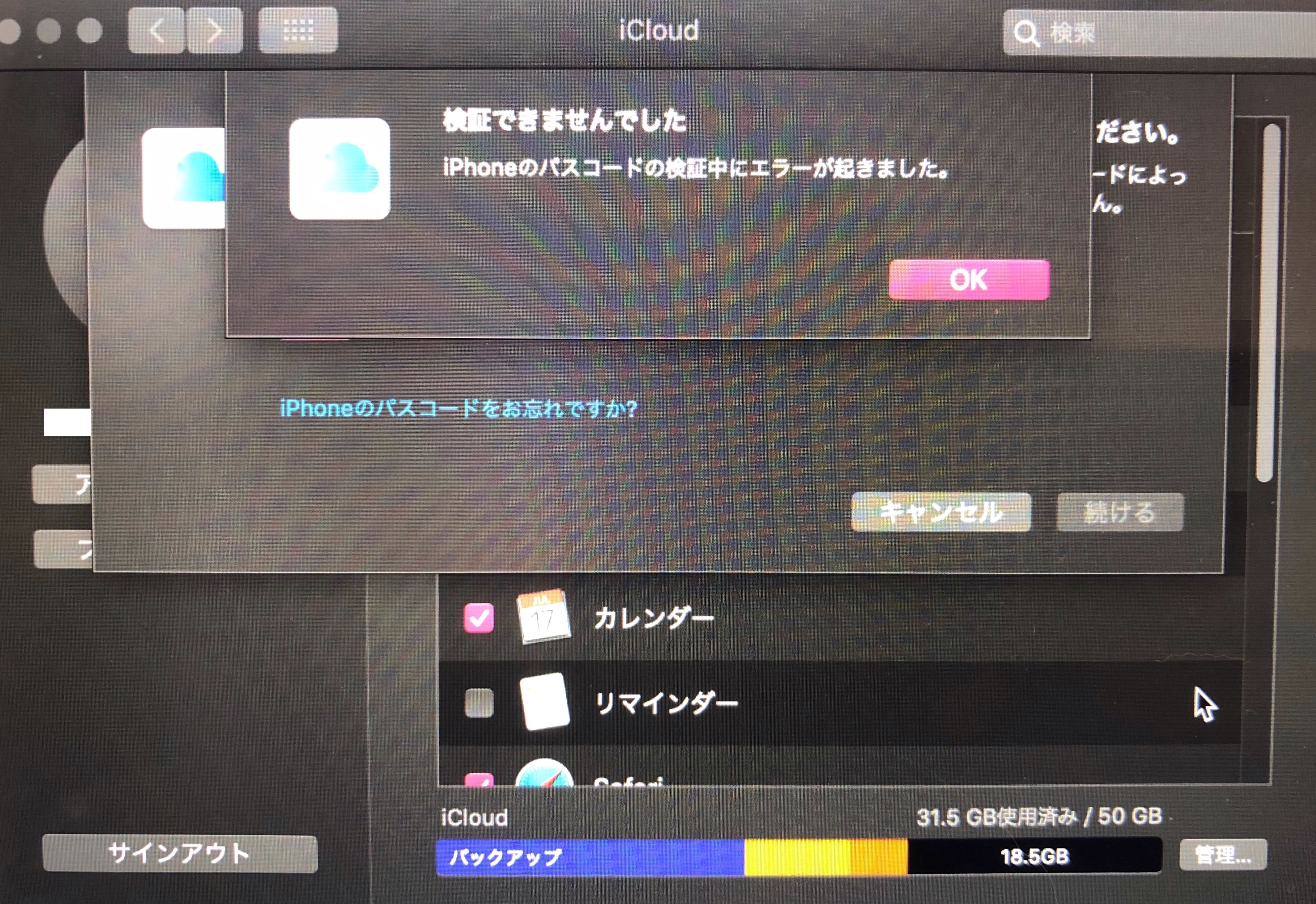 「検証中にエラーが起きました」 / iCloudにログイン出来ません