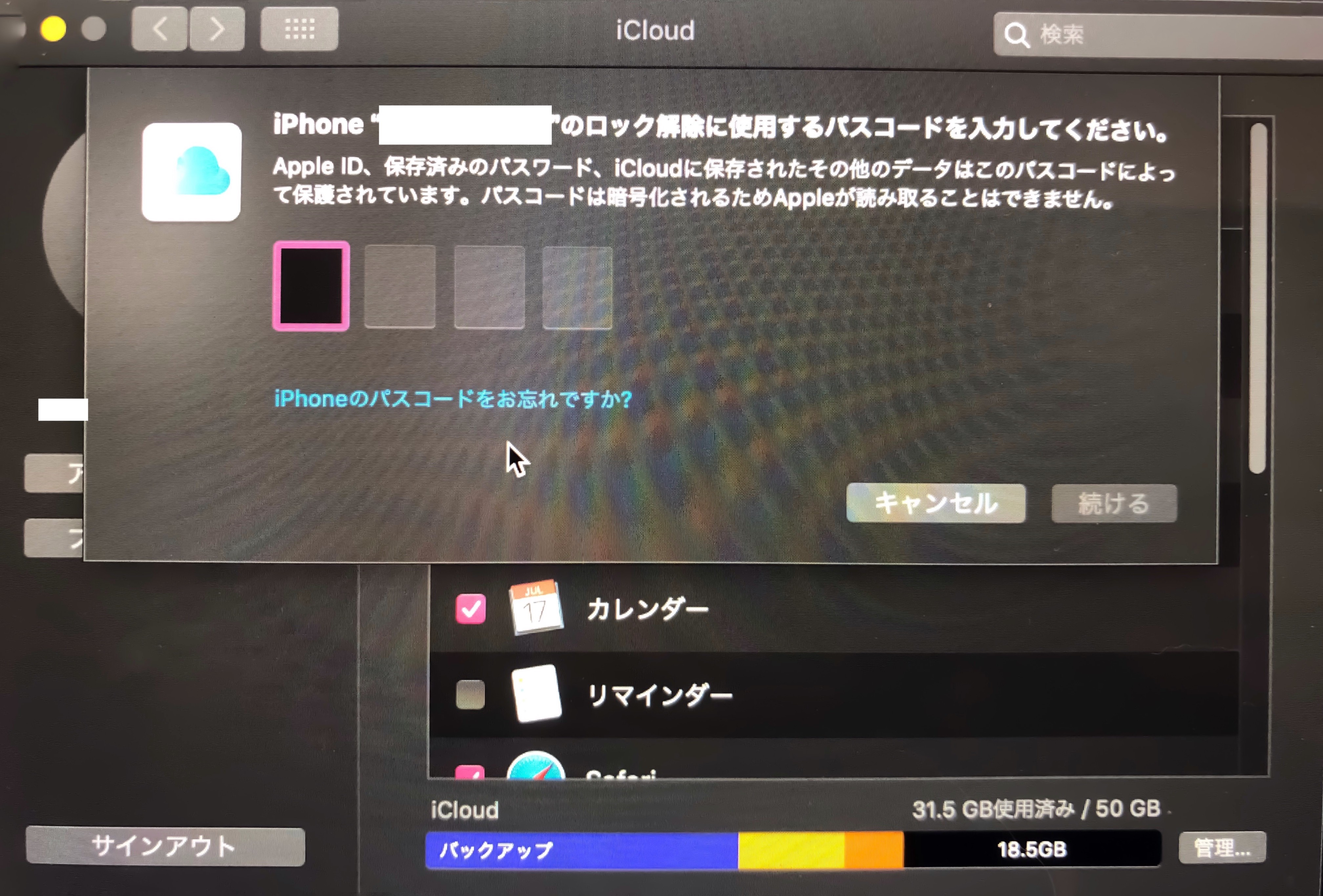 iPhoneのパスコードの検証中にエラーが起きました。」