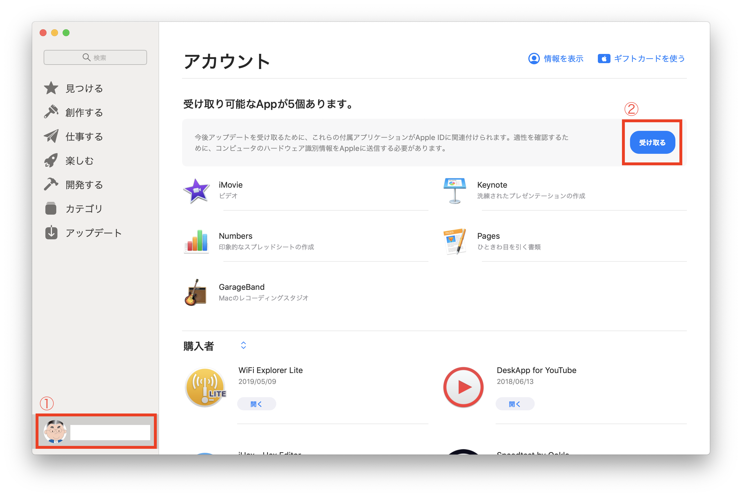 このAppをアップデートするには、App Storeの“アカウント”ページでこのAppを受け取る必要があります。このアップルストアのアカウントページとは一体何なのか?そこでアプリを受け取るの意味も分かりません。よろしくお願い申し上げます。