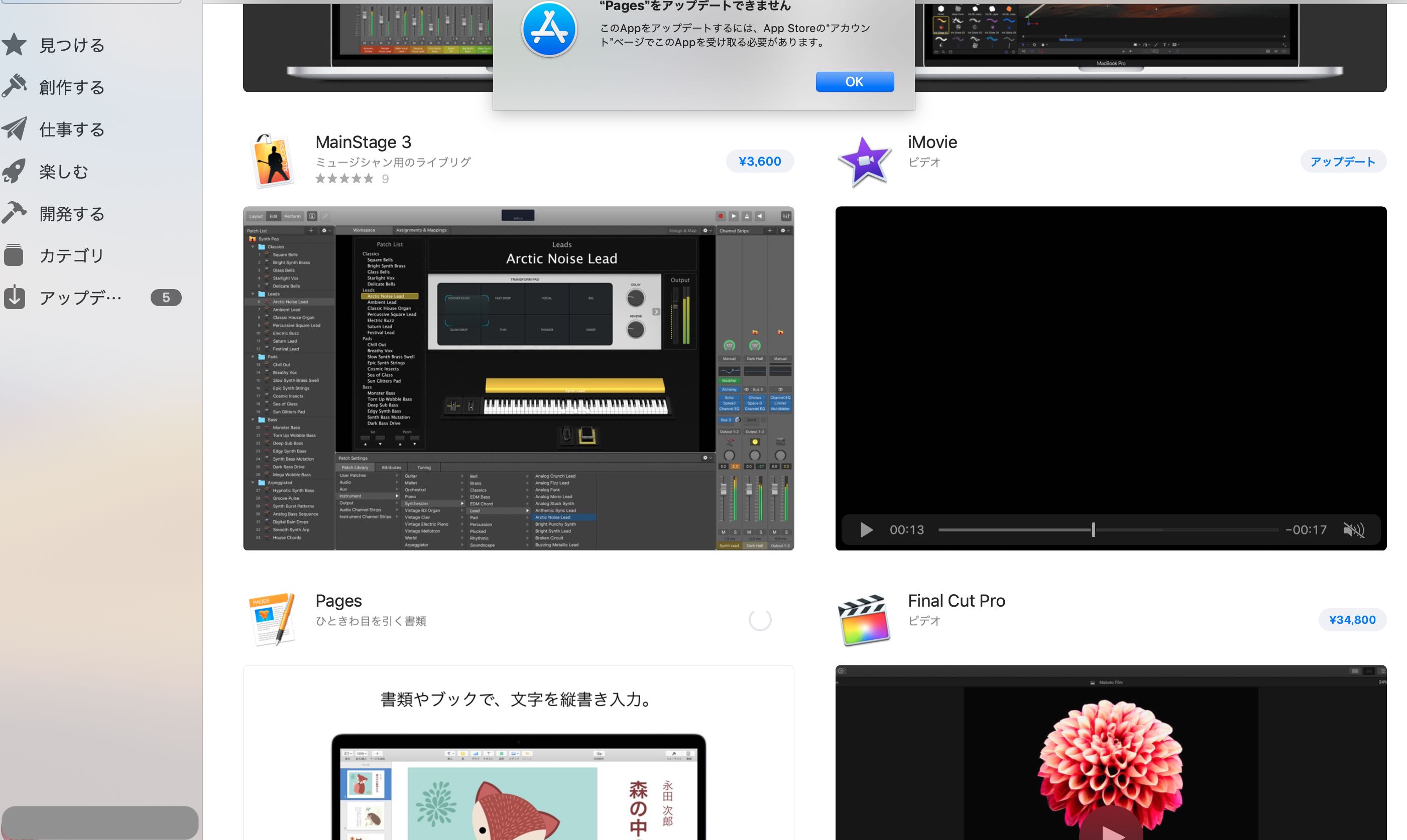 アップデートをしようと思うと次のエラーが出ます。このAppをアップデートするには、App Storeの“アカウント”ページでこのAppを受け取る必要があります。意味が分かりません。教えてください。