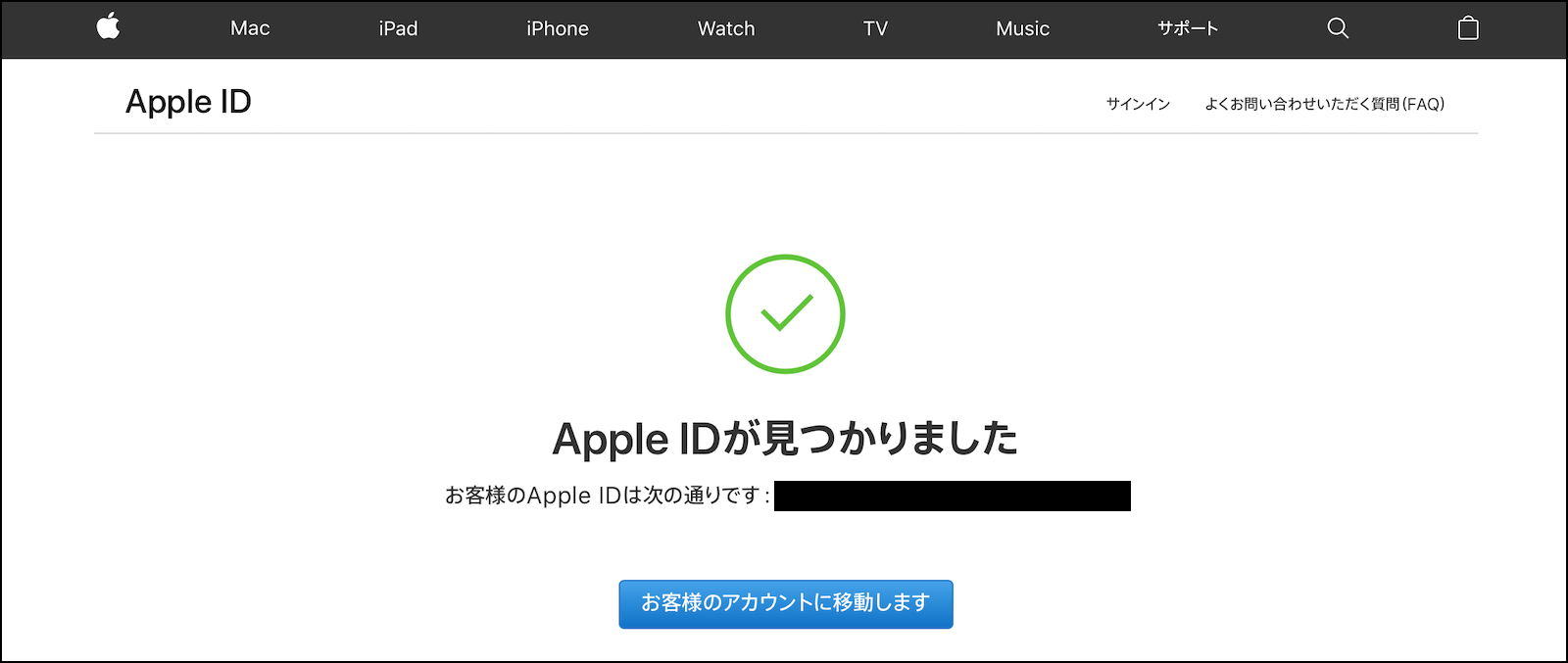 パソコンで,アップルのサポートページにあるApple IDの検索をやってみました。