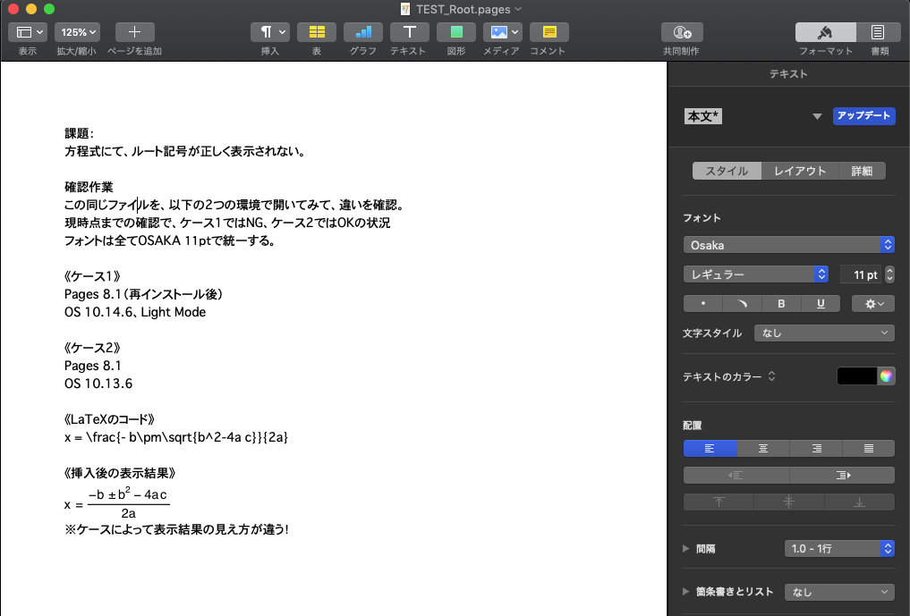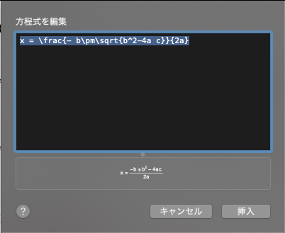 Pagesにて、挿入→方程式でLaTexによるルート記号(√)が使えない