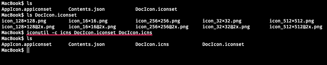 ・ターミナルに iconutil などを打ち込んで作成してみる>>-bash: $: command not foundとなってしまう