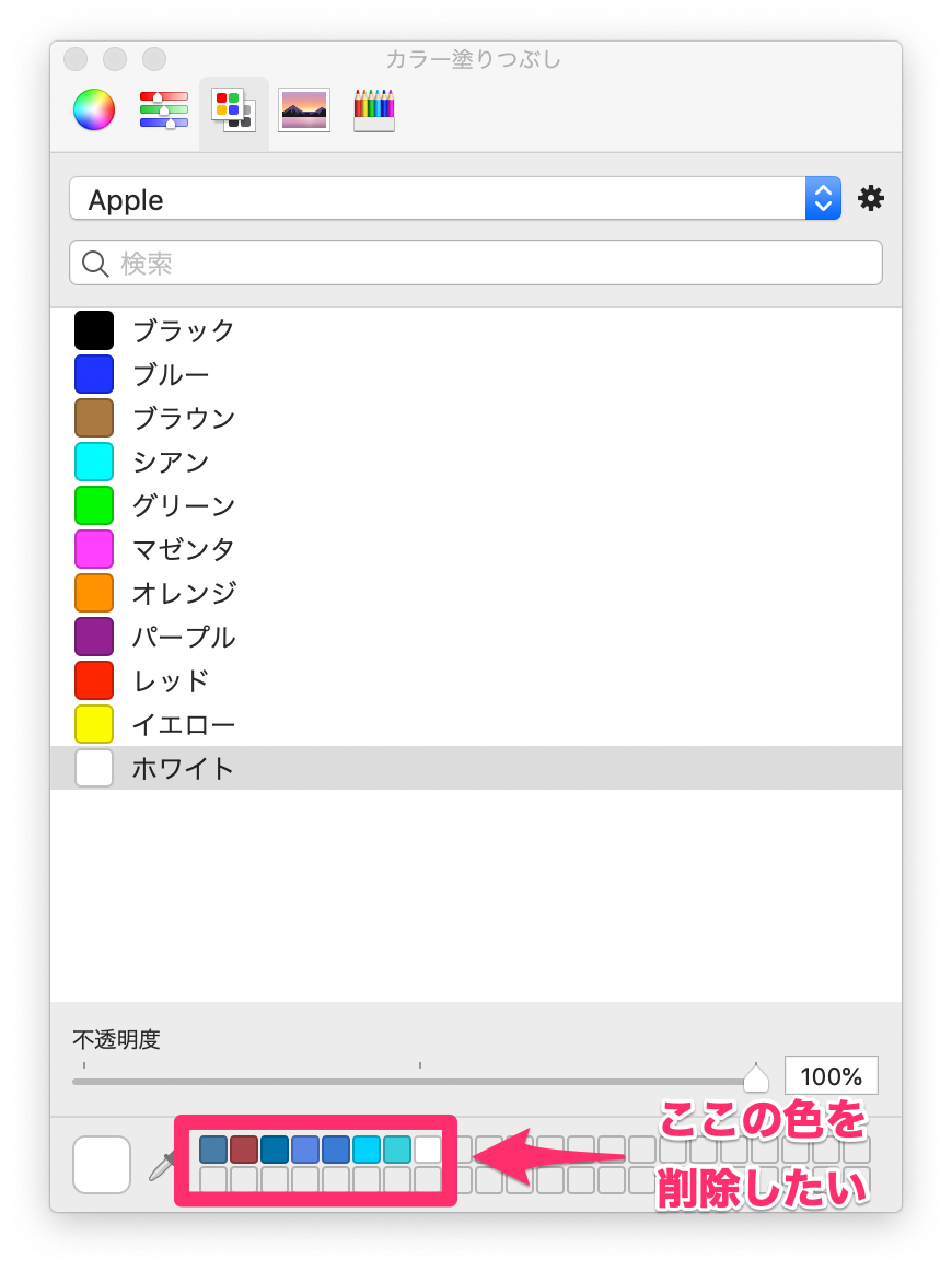 Keynoteで、カラーパレットに追加した色を削除する方法が知りたいです。