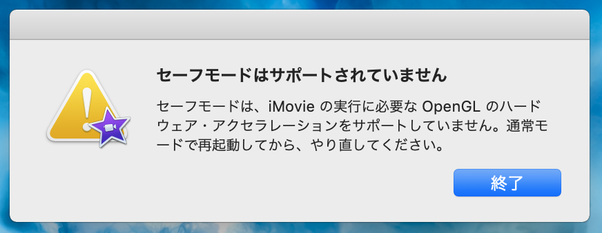 なお、切り分けのために新規ユーザBをOSに作成し、そちらでiMovieを起動したところ、正常に起動しました。