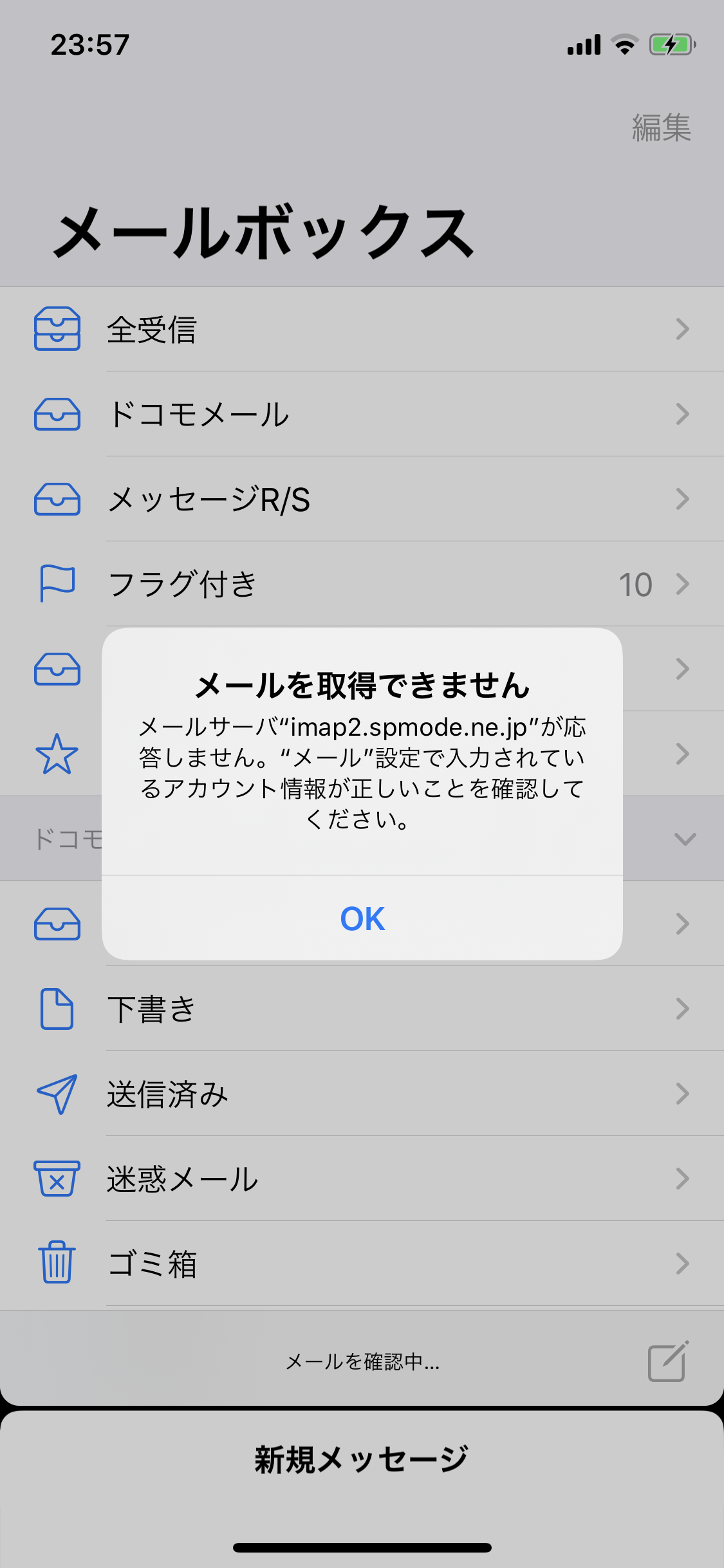 DOCOMOのimap専用パスワードは、設定済みですか?