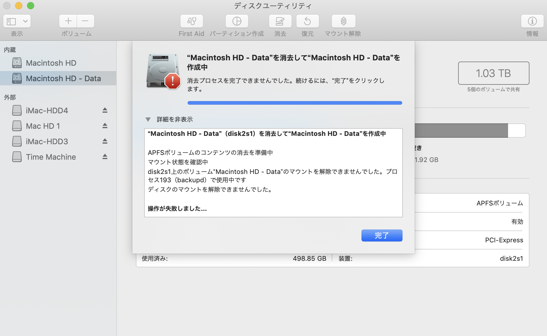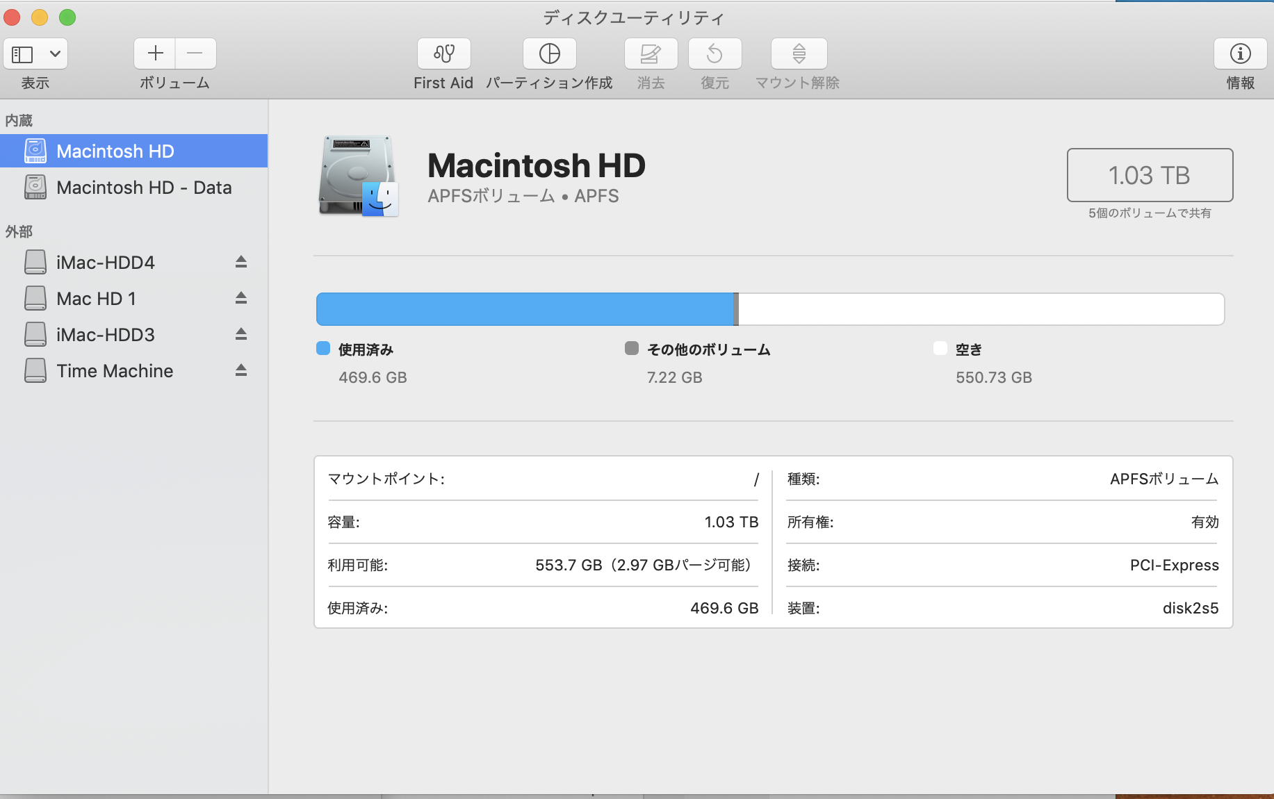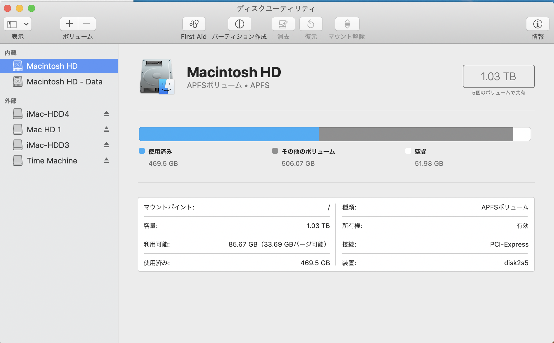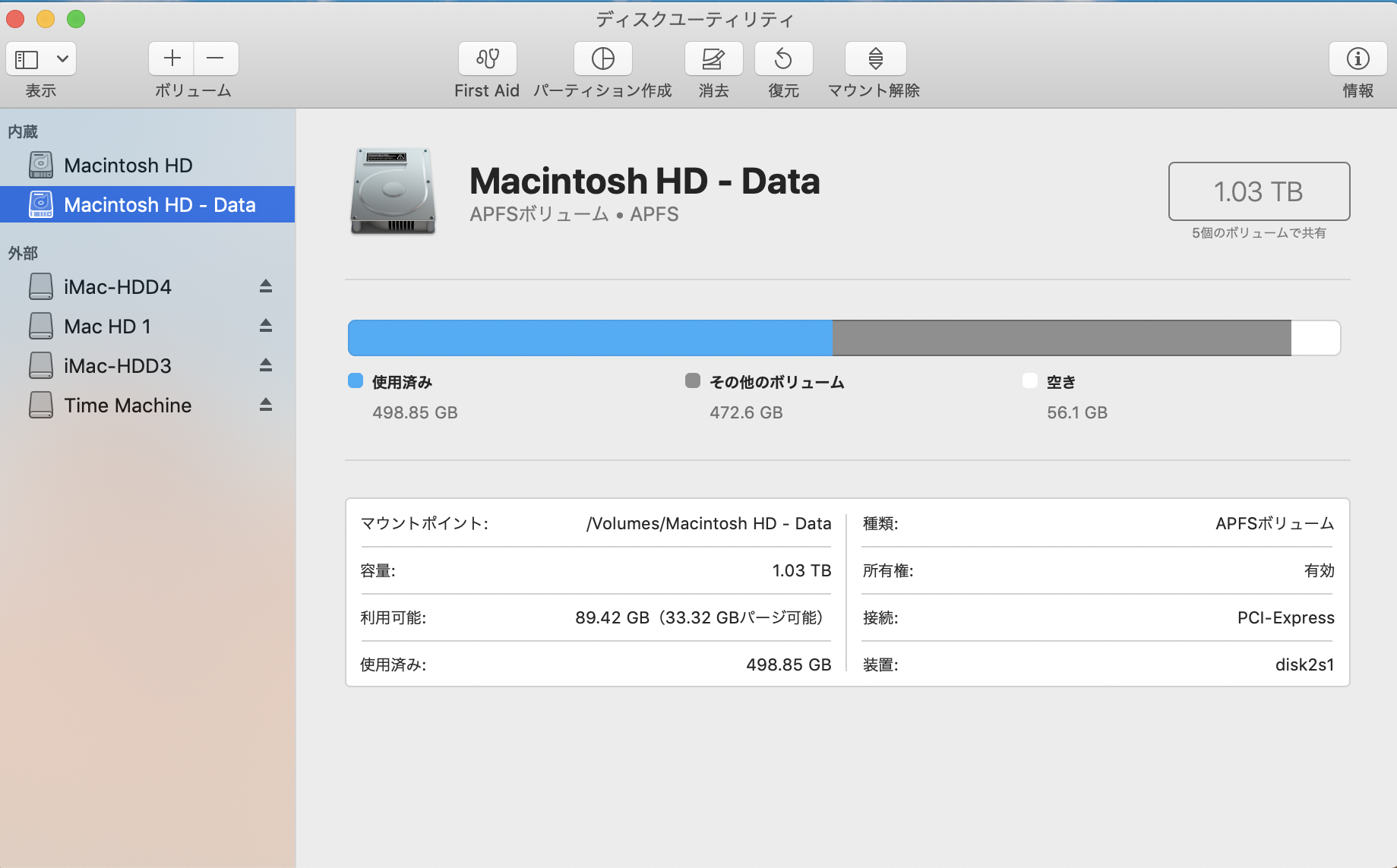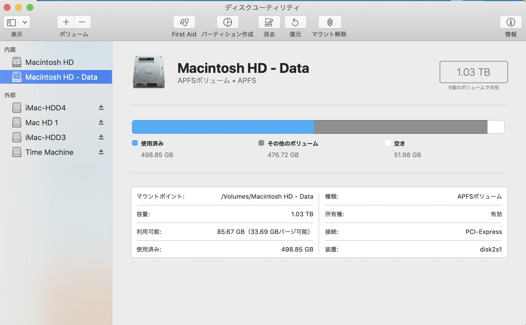 流れ的には・・・。 Catalinaアップデート → アプリに未対応が発覚 → Mojaveにダウングレード → Macintosh HD-Dataの残存を確認
