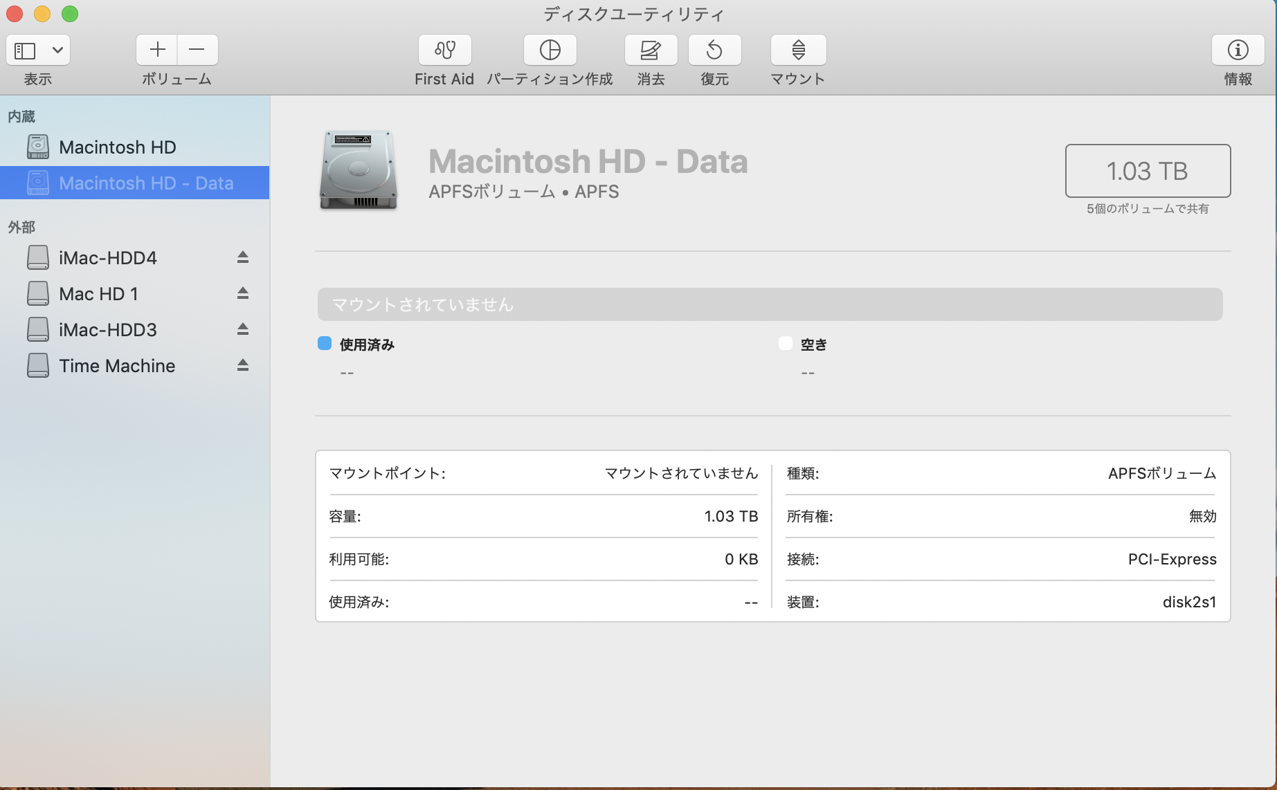 macOS Catalina でMacintosh HDとMacintosh HD - DATAと言う二つフォルダ