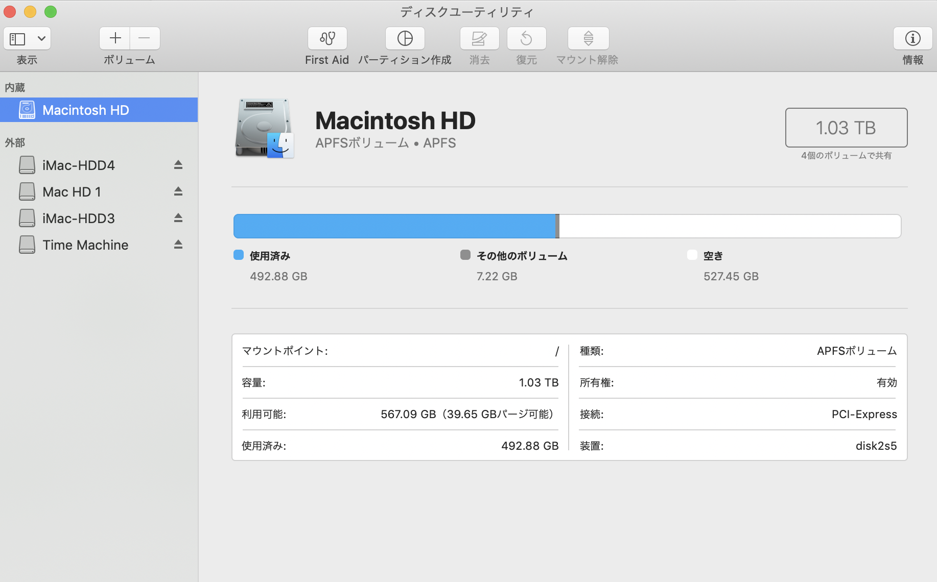 macOS Catalina でMacintosh HDとMacintosh HD - DATAと言う二つフォルダ