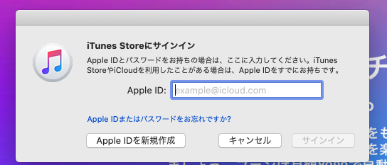 3つ目が、「itunes(ミュージック)」でも、同じ現象でログインできません。