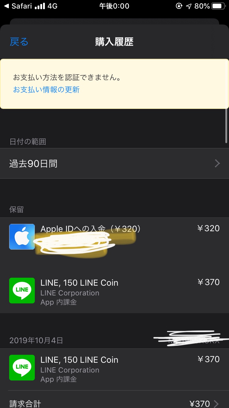 バンドルは、デビットカードなので残高が残っていなければ支払いキャンセルされるはずなのですが...ラインのコインだけ支払えていないことになっています。