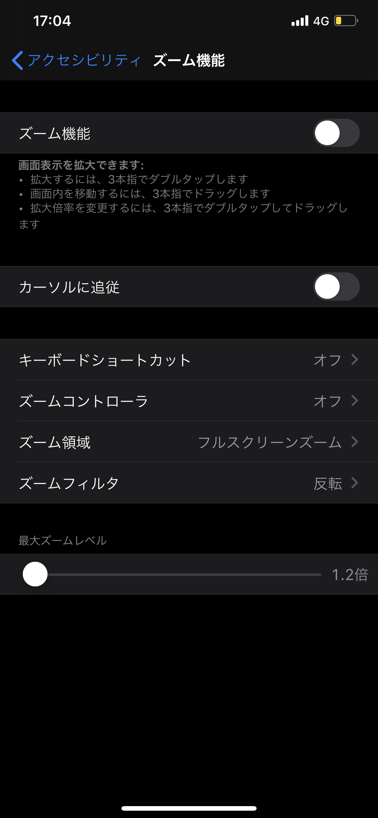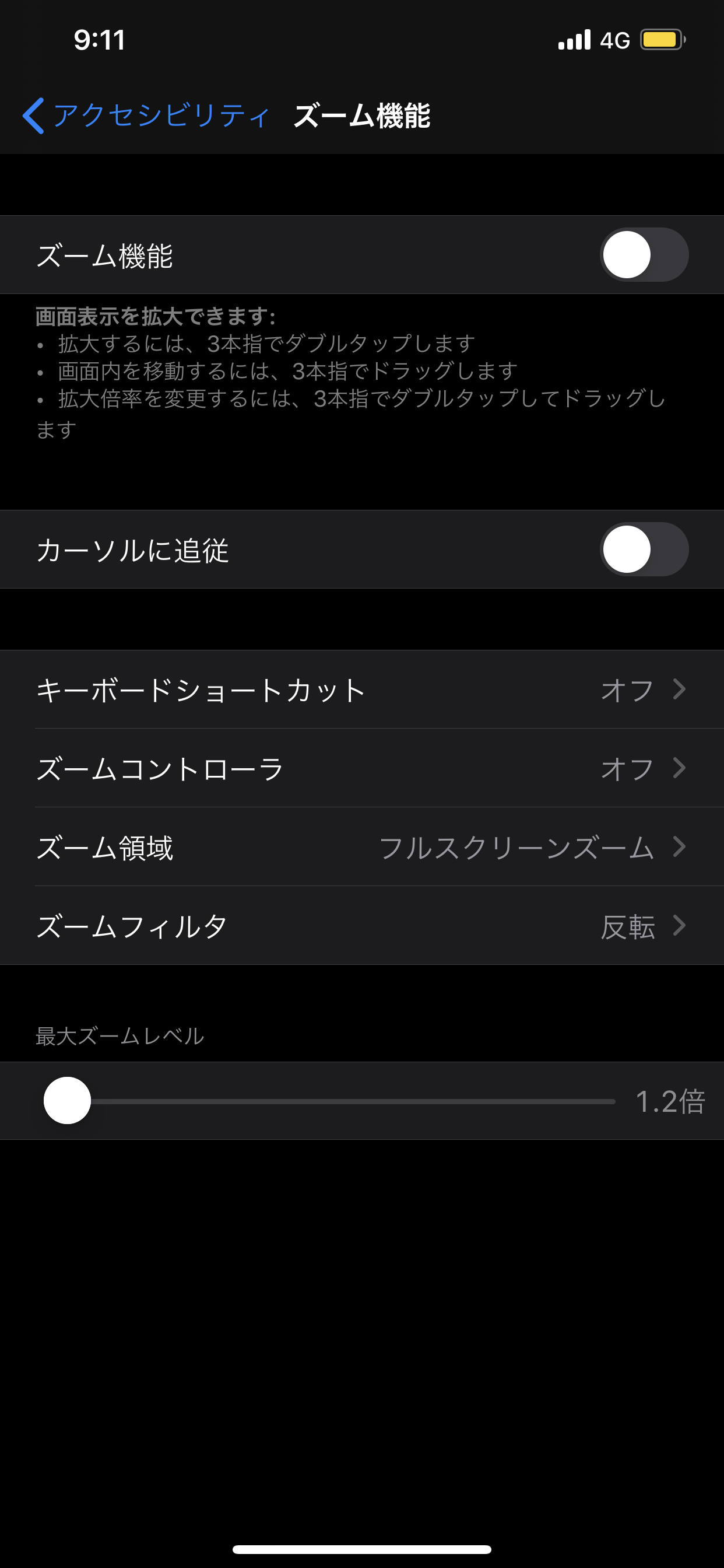 アクセシビリティのズーム機能をoffにするとダークモードになりません