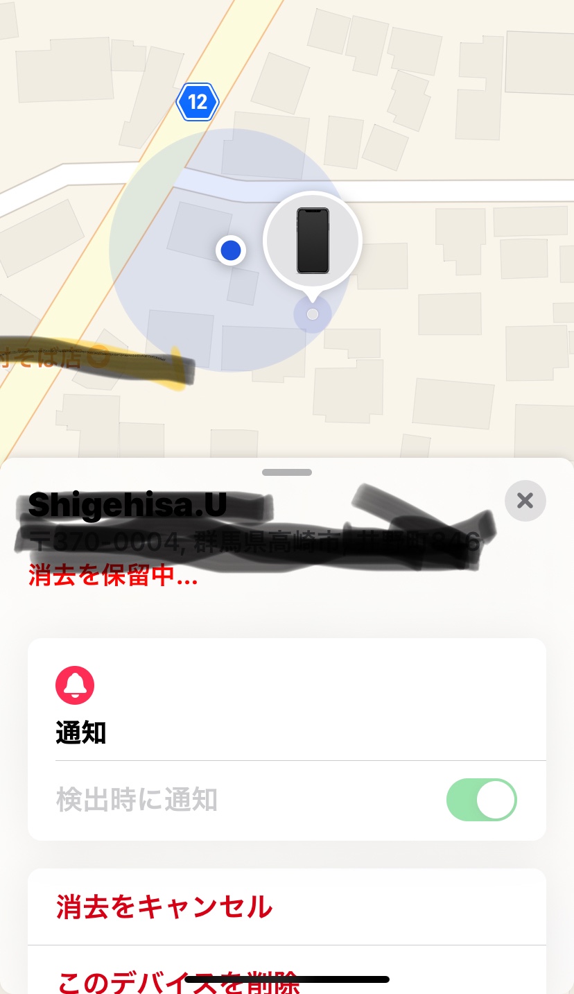 代替え携帯を購入し、iPhoneを探すで検索しました。