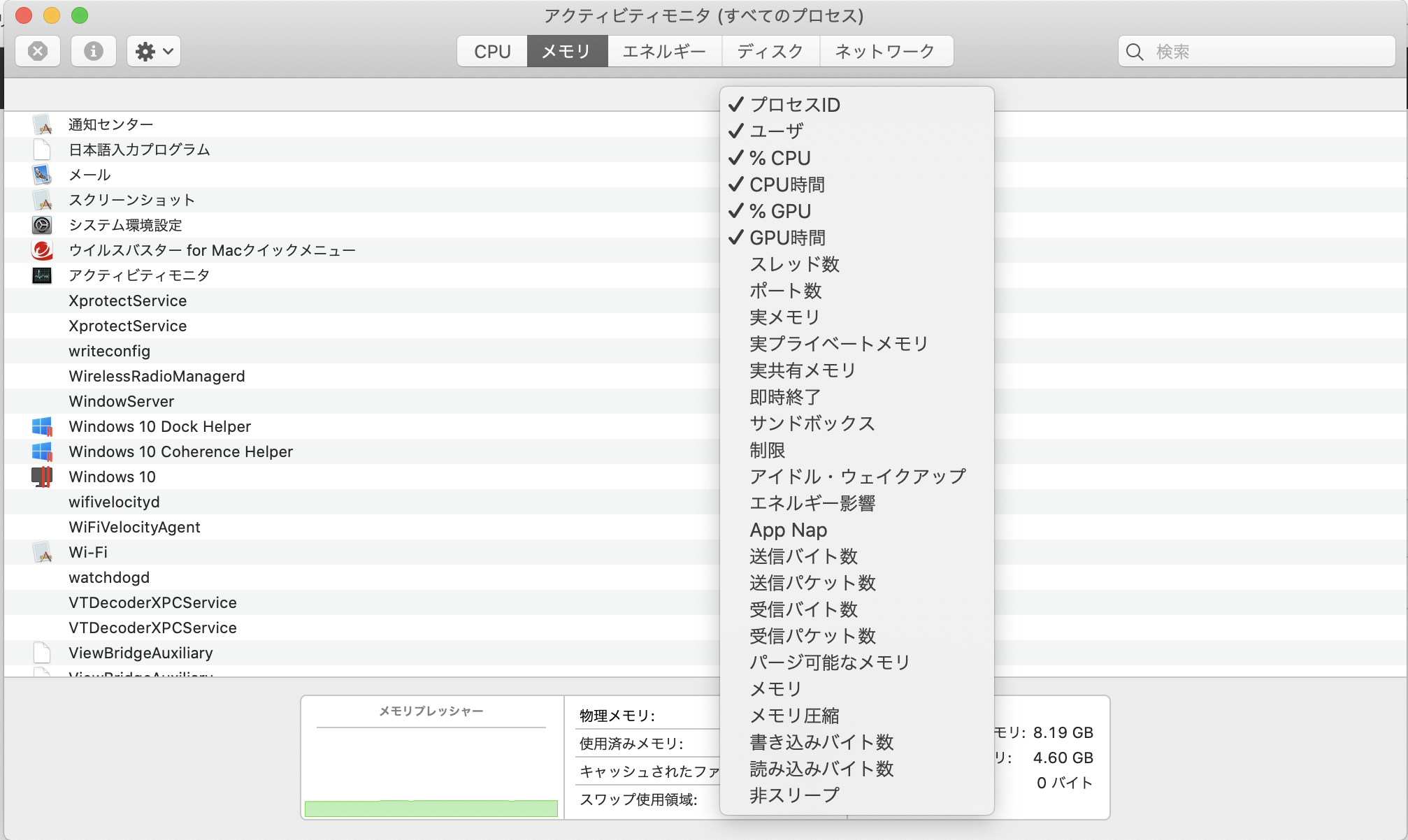 Catalinaにアップデートしたところ、アクティビティモニタに列見出しが表示されなくなり、見出し項目の情報も表示されなくなりました。