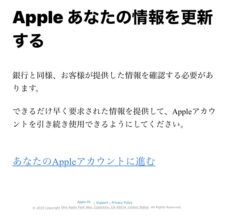 no_replay@apple.comから以下のメールが来ました。不審なメールだと思われますので情報共有お願いします。
