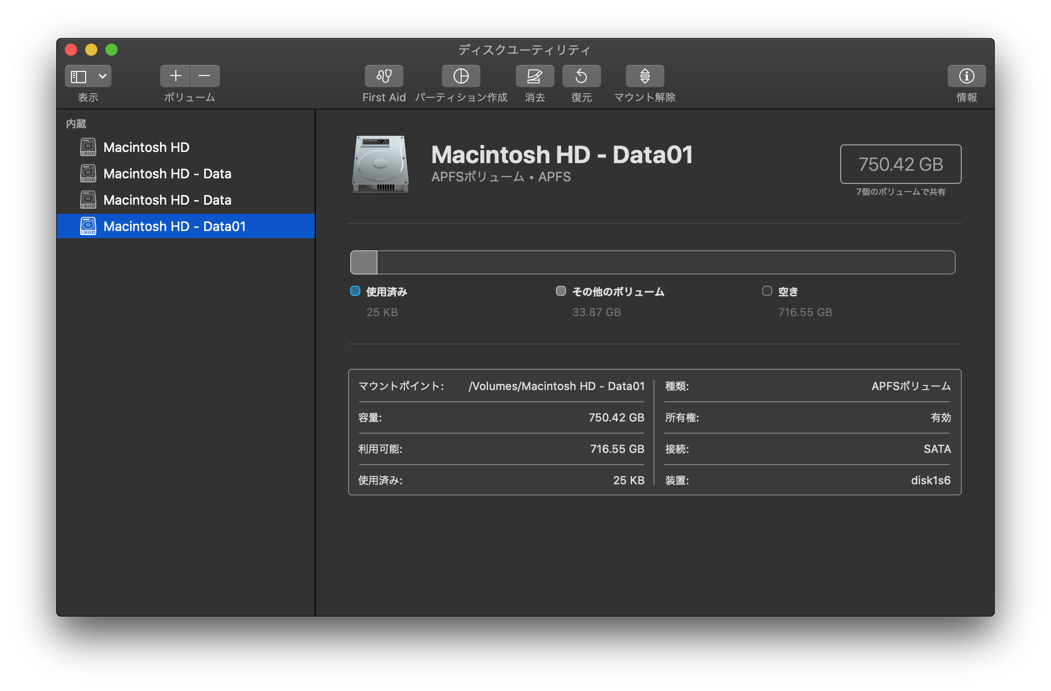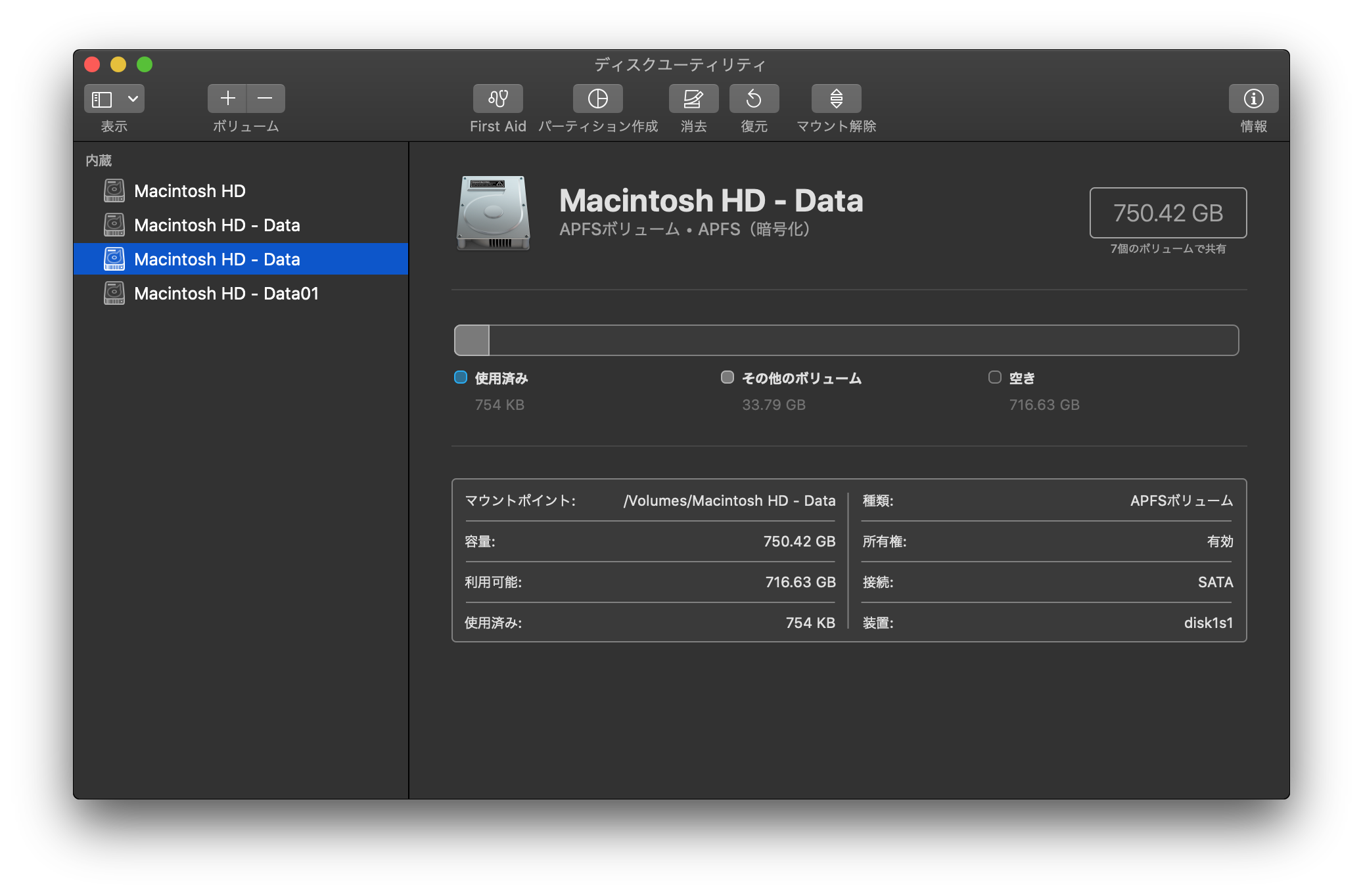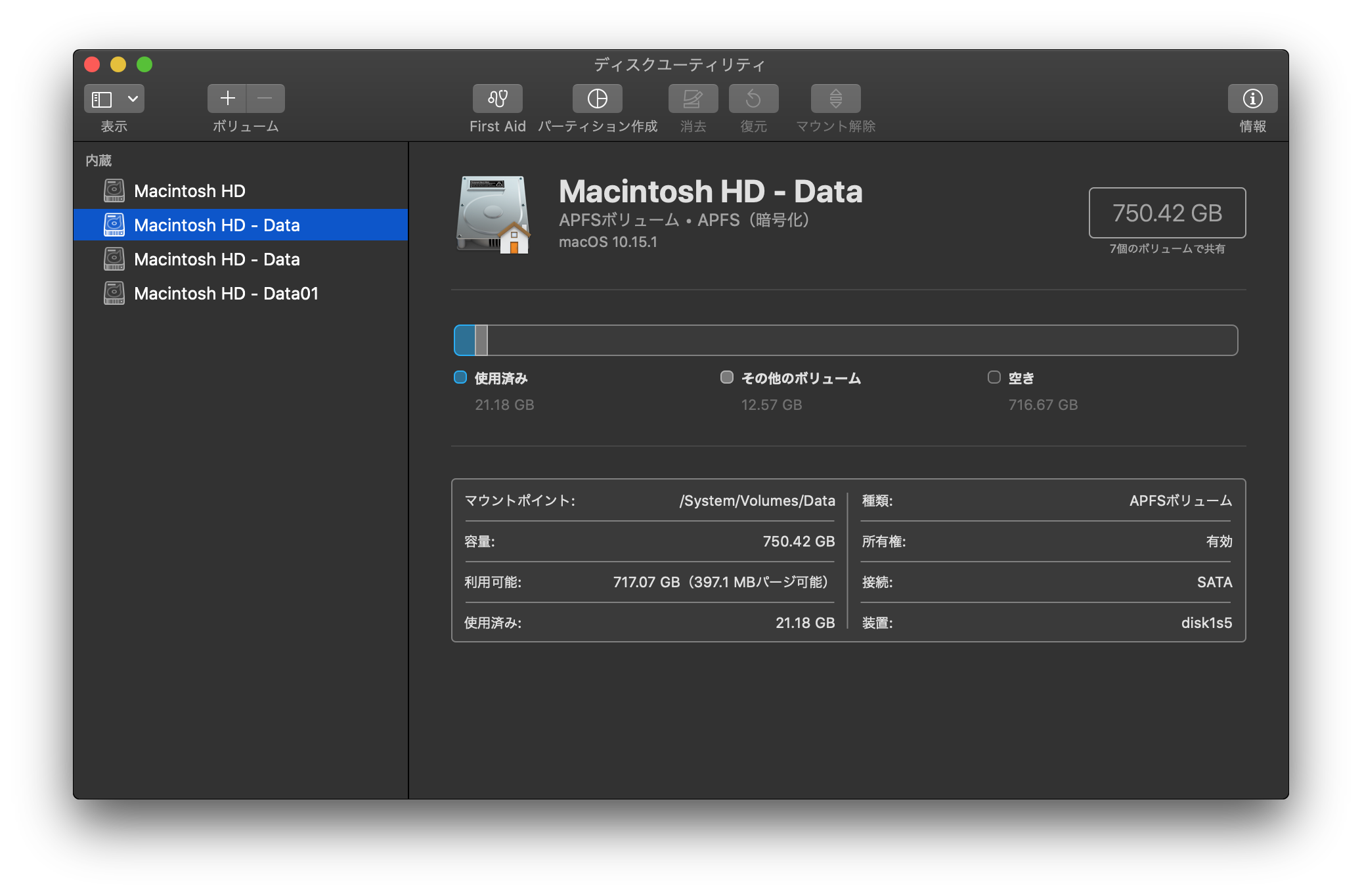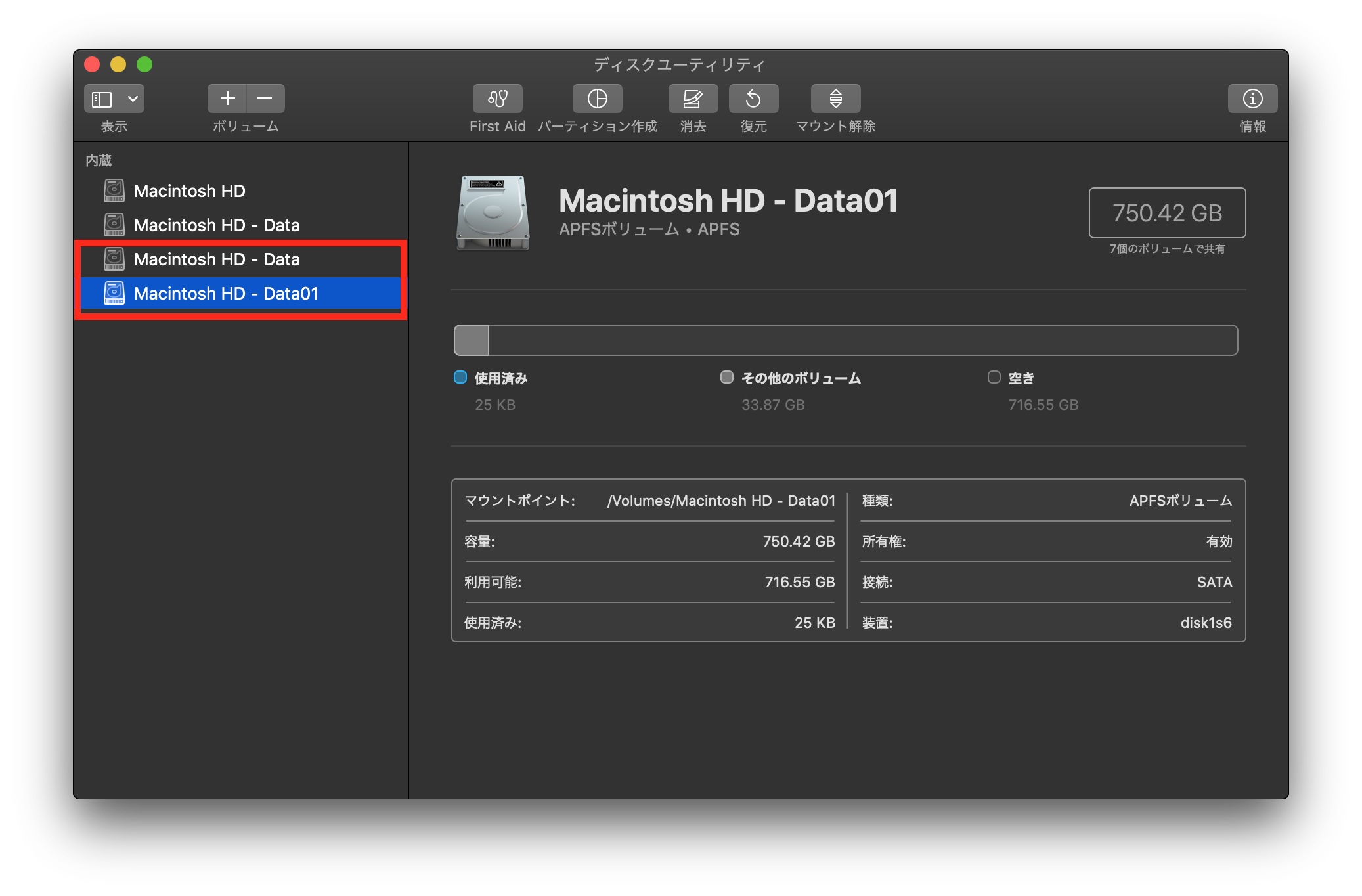 Mojaveからアップグレード/クリーンインストールしたところ、Macintosh HD - DATAが2つできてしまいました。