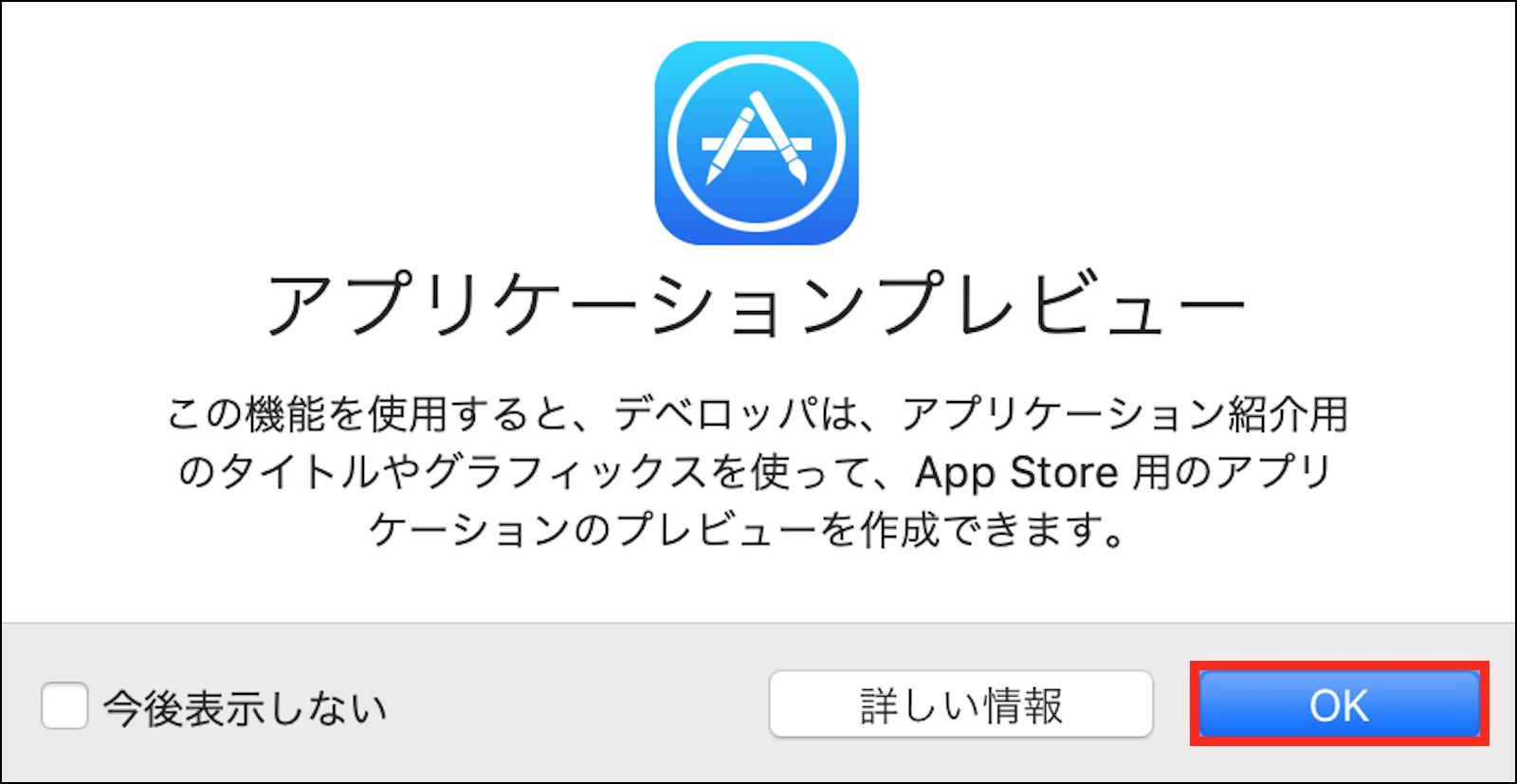 「ファイル」メニュー >「新規アプリケーションプレビュー」を選択 し、